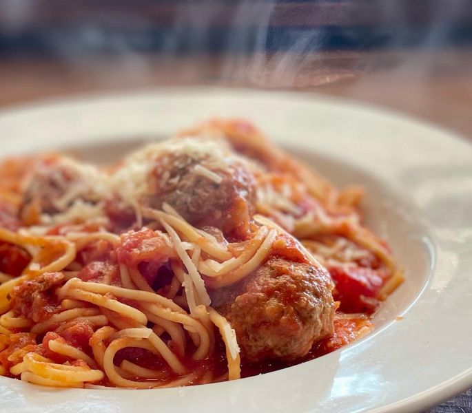 He says, “I serve this in the restaurant as an appetizer dish in which the meatballs are baked in individual casserole dishes and served with classic crusty Italian bread, as well as serving spaghetti and meatballs. At home, I often serve similar style meatball dishes to my family and friends — but it’s almost never exactly the same dish!”