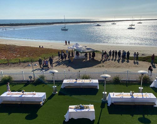 Directly outside the Terrace is a patio space that overlooks the Pacific Ocean, perfect for sipping cocktails while enjoying glorious sunsets. (NOTE: Outdoor spaces booked separately, not included in Ocean Terrace rental). The Terrace can be used in conjunction with the outdoor patio space (booked separately) for a great Reception/Dinner combination.