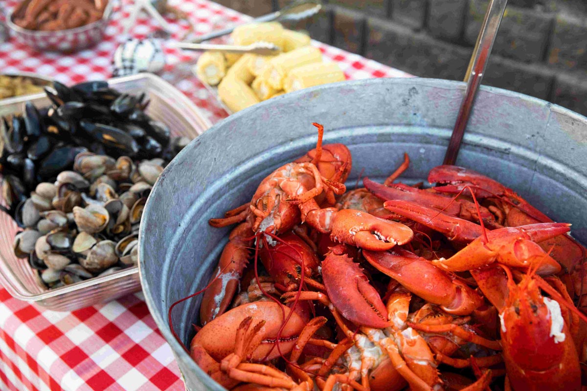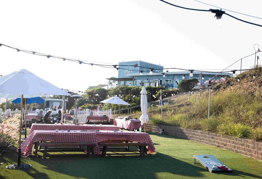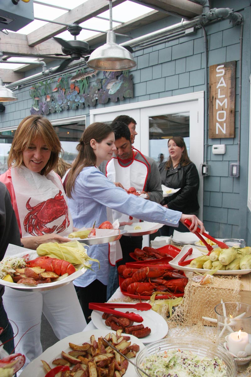 Sam’s Beachfront Lawn is a grassy outdoor area directly below the restaurant, facing the ocean, and just steps away from having your toes in the sand. The Beachfront Lawn is accessible from a wooden stairway that leads down to the property below Sam’s. A wonderful banquet location for an outdoor beach front party or team-building event, this space is also great to enjoy Sam’s authentic Lobster Clambake.