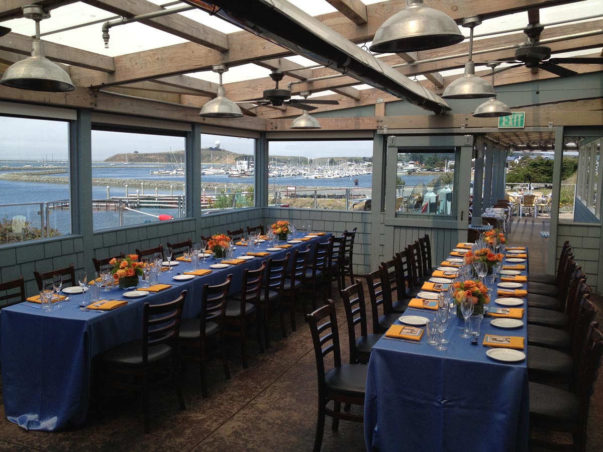 The indoor Mavericks banquet room is perfect for intimate, semi-private parties. The corner room is surrounded by windows that point out to the infamous Mavericks surfing waves just beyond Pillar Point Harbor. The semi-private room also provides a prime spot for enjoying Sam’s beautiful sunsets.